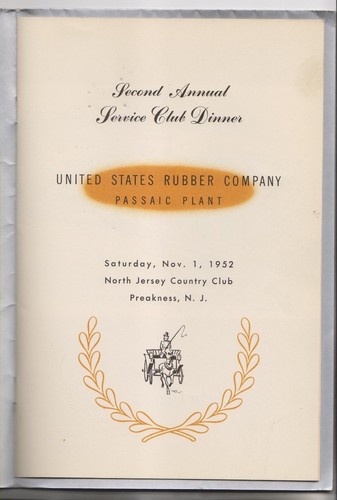 1952 Program Menu United States Rubber Co Passaic Nj North Jersey Country Club Ebay